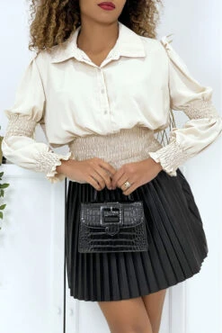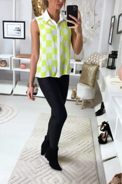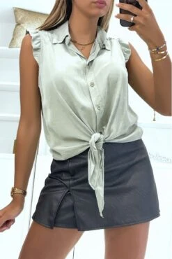 Chemise Satinée Verte Anis à Manches Courtes Couleur Vitaminée Hyper Tendance Cette été