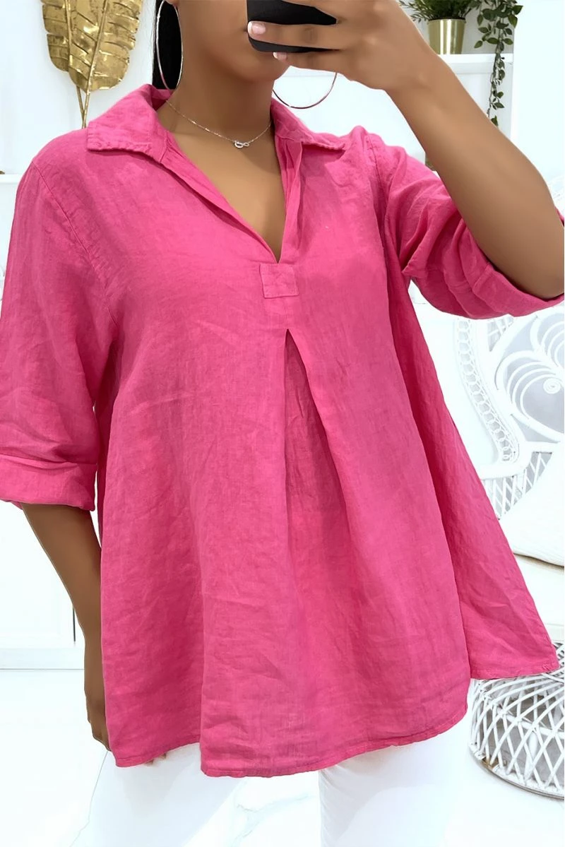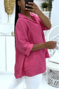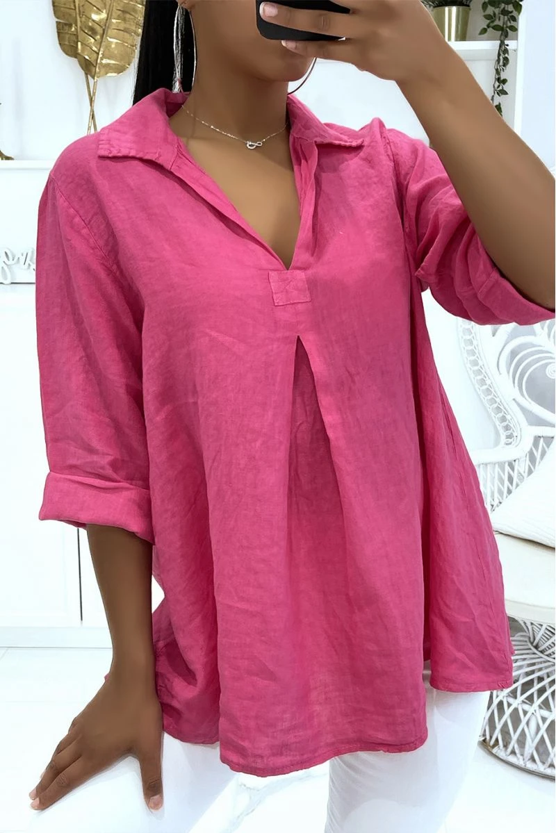 Blouse oversize fuchsia longue à col à revers et manches à boutons