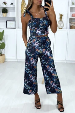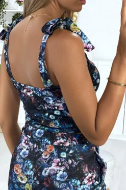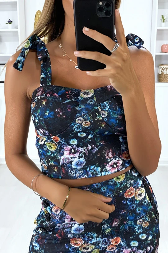 Bustier motif fleuris noir avec noeud aux bretelles. bustier femme tendance et pas cherÂ