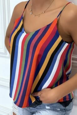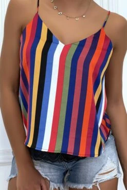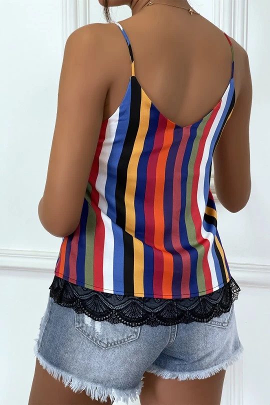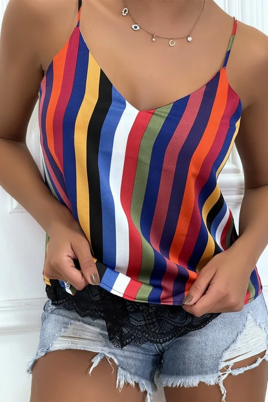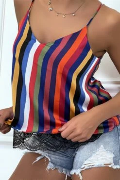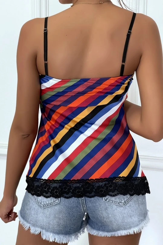 Caraco multicolor, avec fines bretelles et dentelle en bas. AgrĂ©able et simple Ă porter.Â