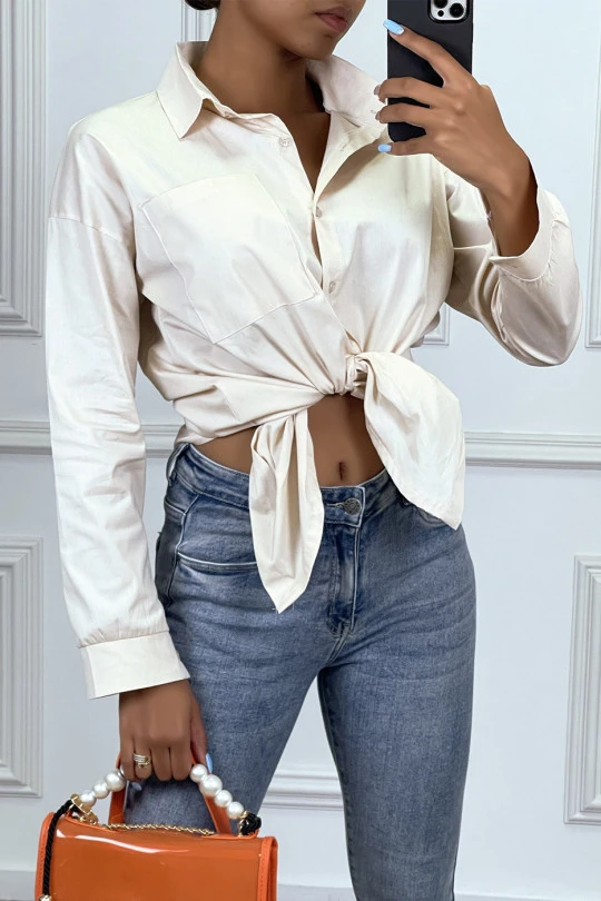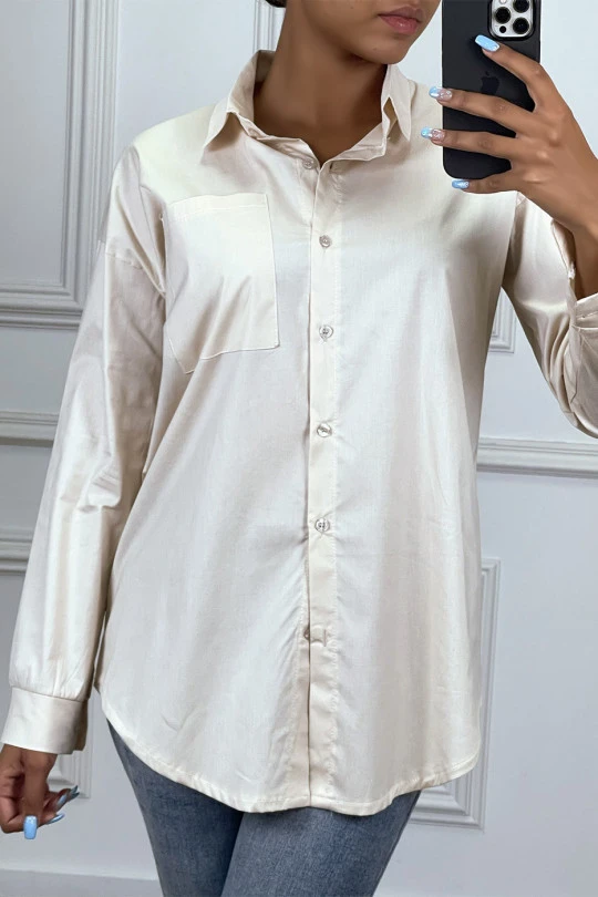 Chemise beige over size avec poche. Chemise femme fashion et pas cher
