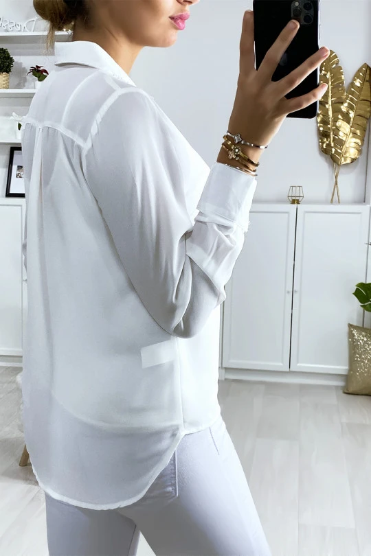 Chemise blanche pour femme avec strass au col. Chemise femme pas cherÂ