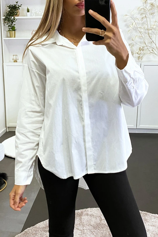 Chemise blanche over size court devant et long derrière. Mode femme pas cherÂ
