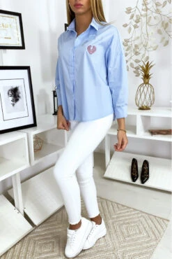 Chemise bleu fashion et chic pour femme très tendance et pas cher.Â