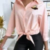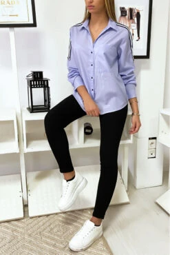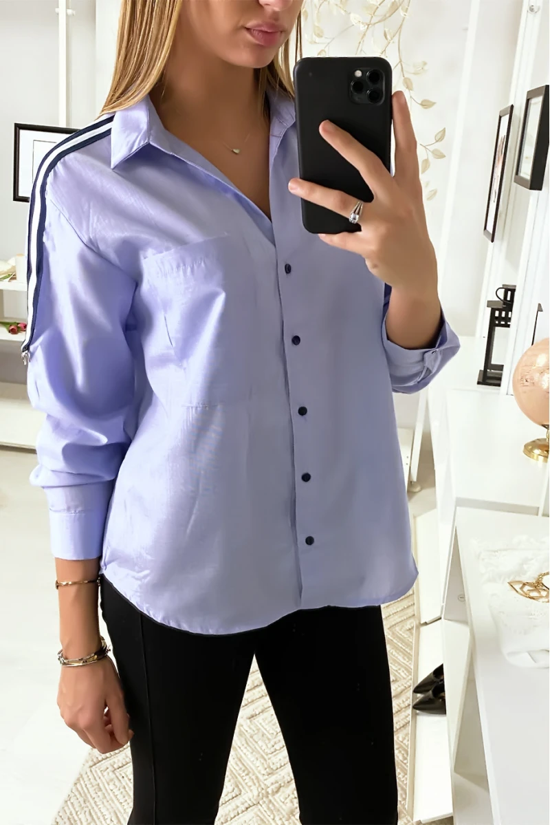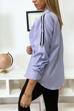 Chemise Bleue à bande rayé sur épaules. Effet oversize, la chemise est un incontournable de votre garde robe.