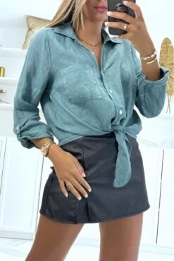 Chemise en laine indigo ample et confortable avec joli noeud et une poche