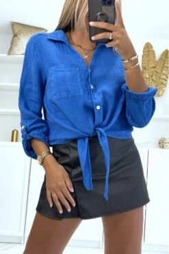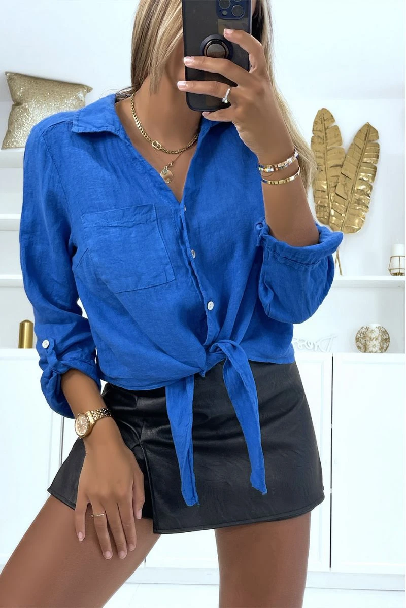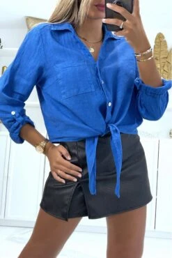 Chemise en laine royal ample et confortable avec joli noeud et une poche