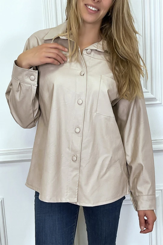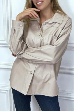 Chemise en simili beige over size. Chemise femme en simili très fashionÂ