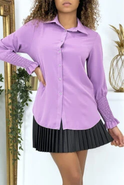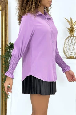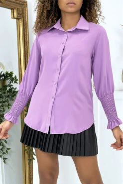 Chemise lilas avec fronce aux manches. Chemise femme tendanceÂ