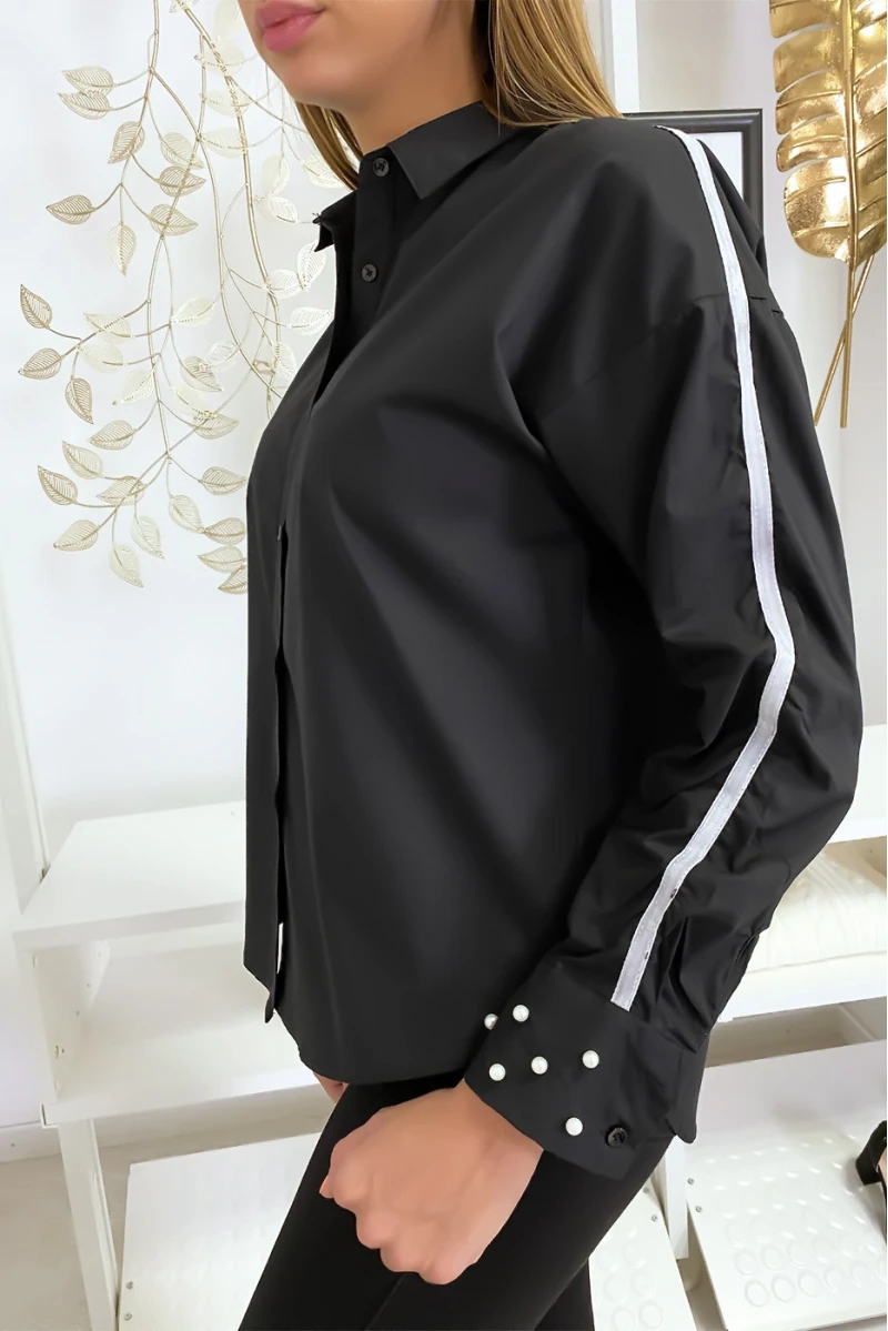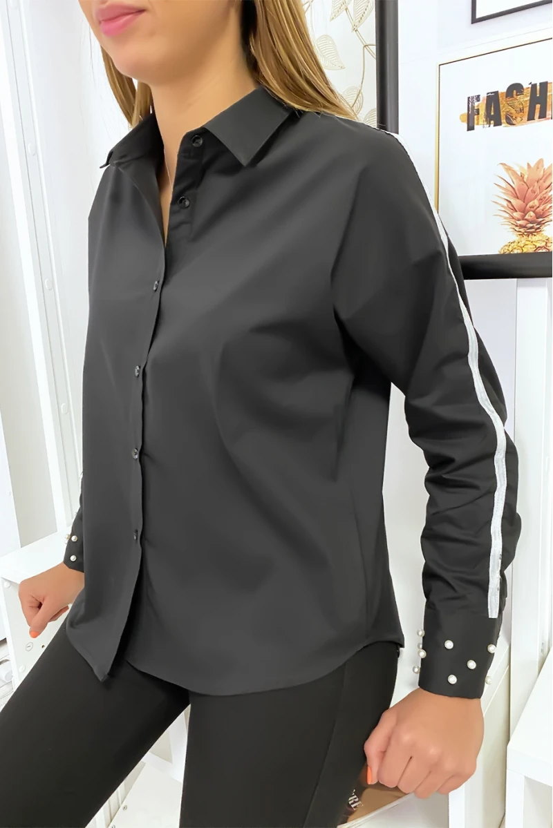 Chemise pour femme en noir avec bandes et perles aux manche. VĂŞtement pour femme chic et pas cherÂ