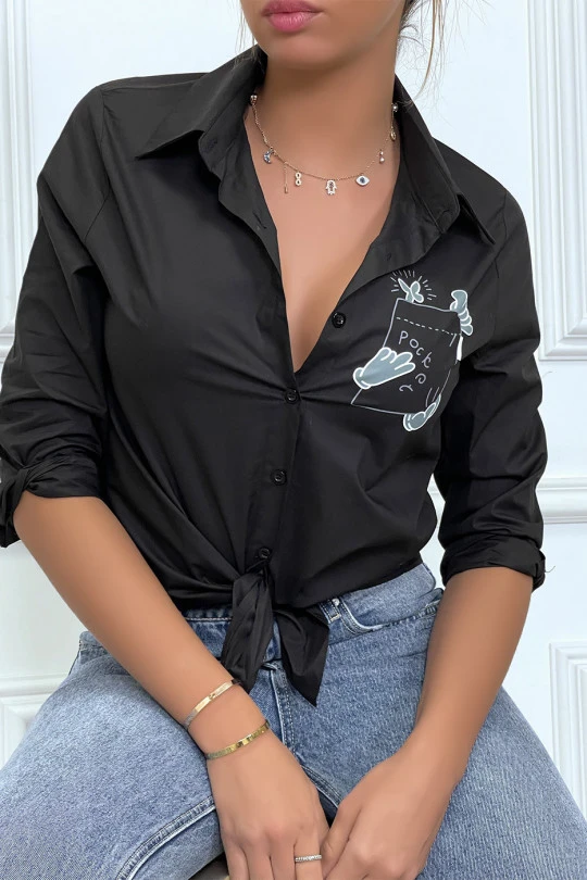 Chemise noire à manches longues avec imprimé. Ce basic du dressing avec une petite touche d’originalité saura vous séduire.