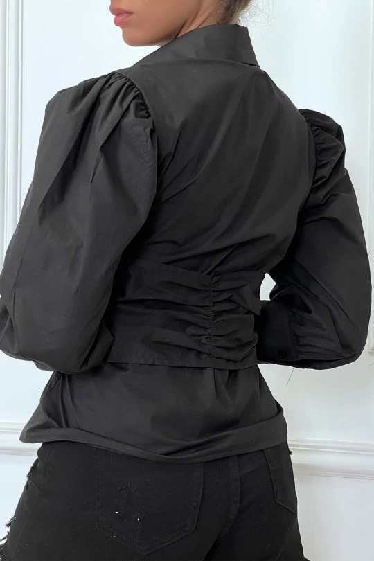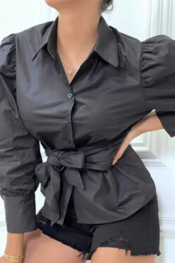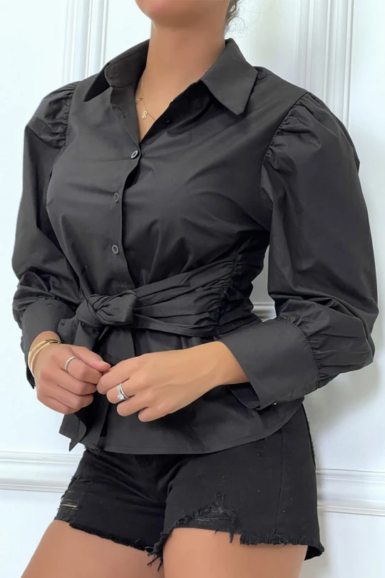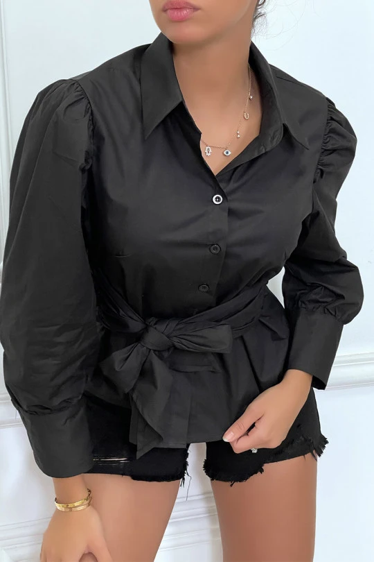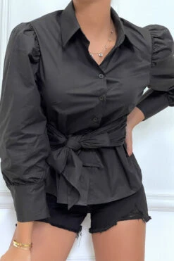 Chemise noire avec manches bouffante et ceinture intégré. Mode femme pas cher