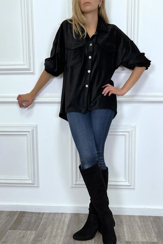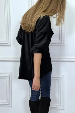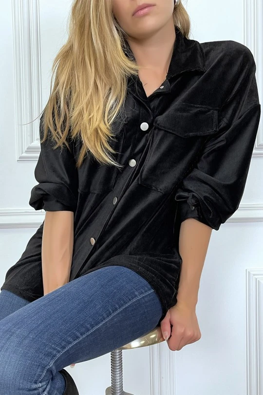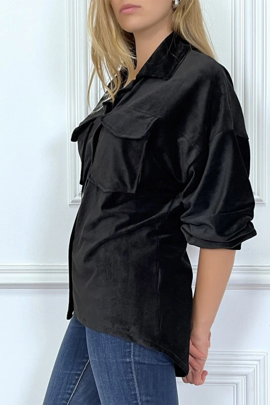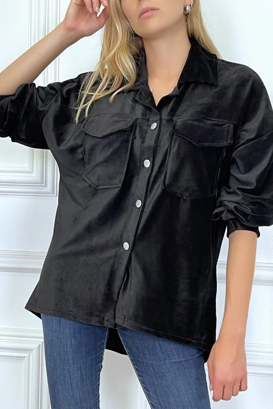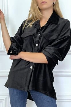 Chemise over size en velours noir avec poches. Chemise femme en velours très fashionÂ