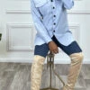 Haut Beige Effet Velours Et Maille Transparente Au Niveau Des épaules Pour Un Effet Col Bateau