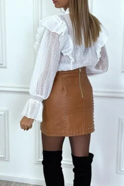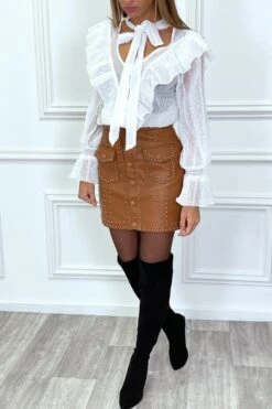 Chemisier blanc en voile à plumetis, volants, et col lavallière, de super manches bouffantes très chic, ce chemisier est un atout garantie pour vos tenues élégantes.