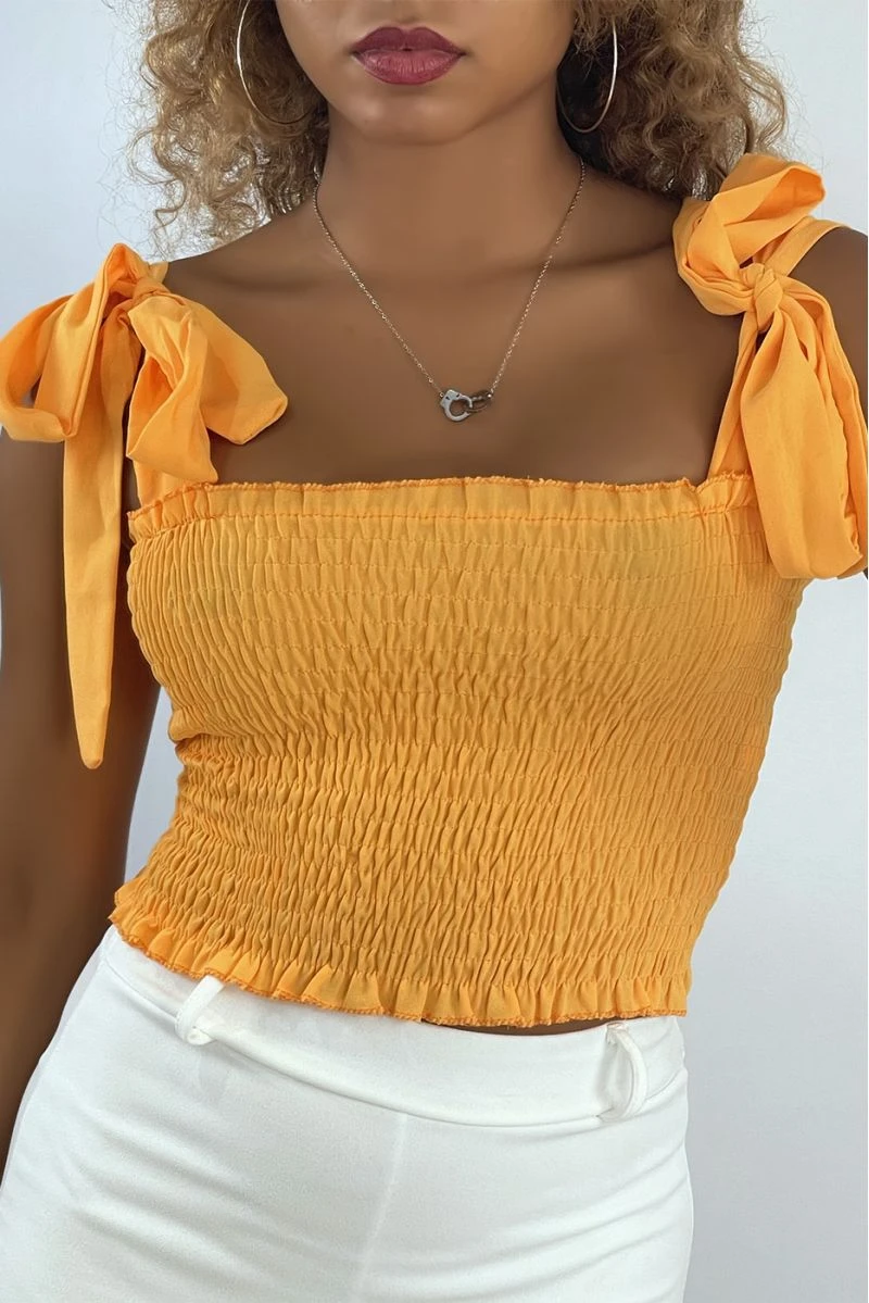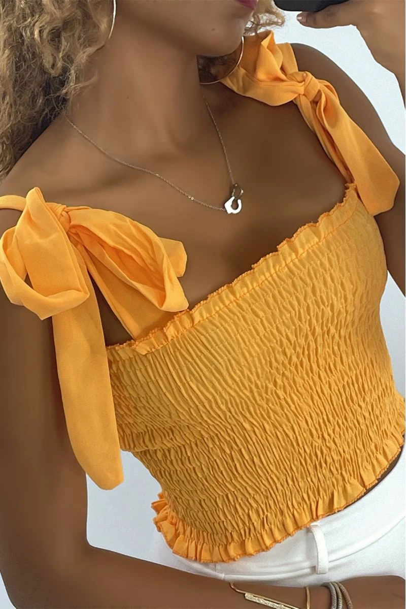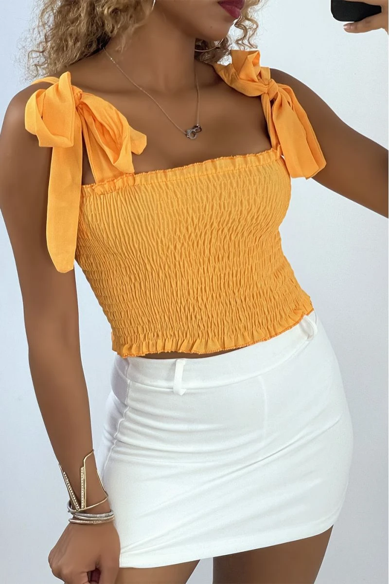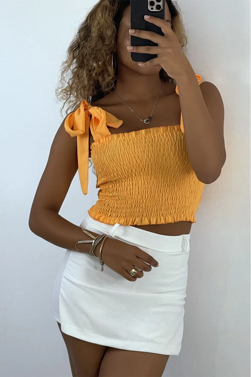 Crop top bustier froncé orange avec bretelle à nouer