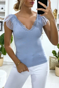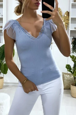 Débardeur bleu à volants, tendance femme à petit prix, facile à porter