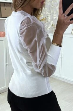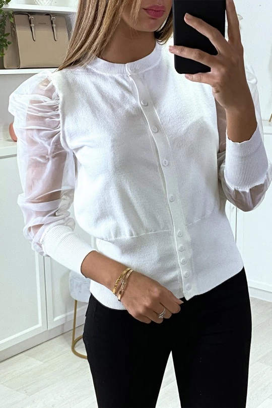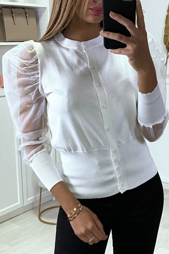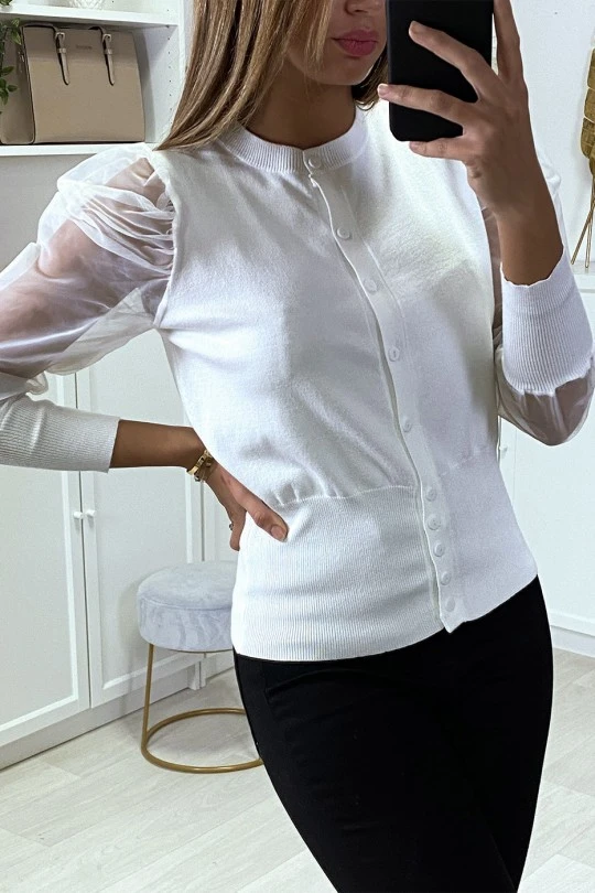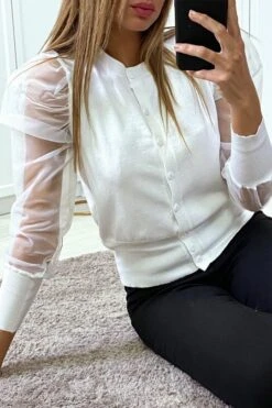 Gilet Blanc Ă  Manches Transparentes En Tulle