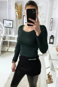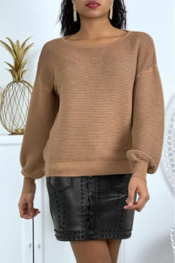 Haut Beige Effet Velours Et Maille Transparente Au Niveau Des épaules Pour Un Effet Col Bateau
