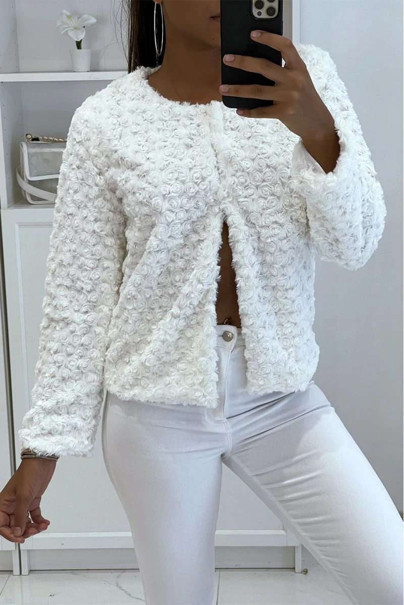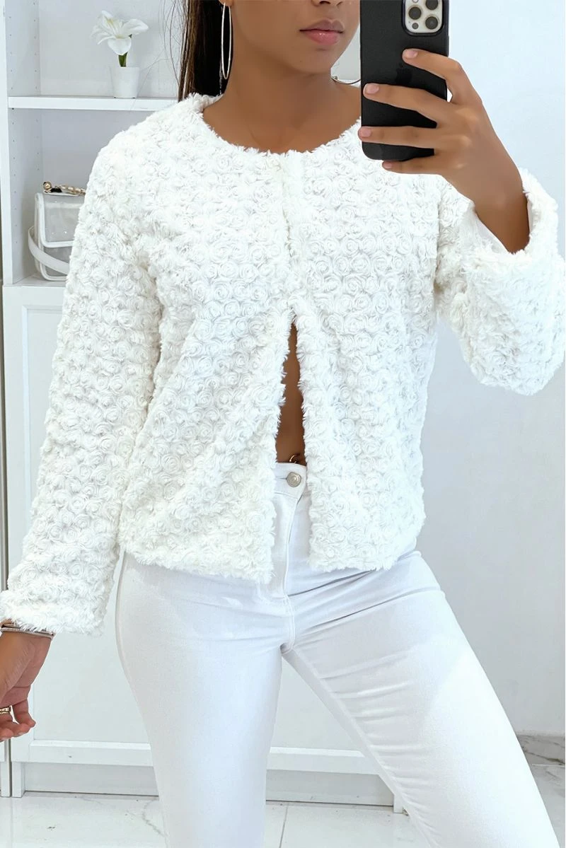 Gilet chic blanc tout doux à col rond style vintage très chic