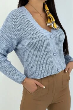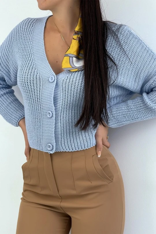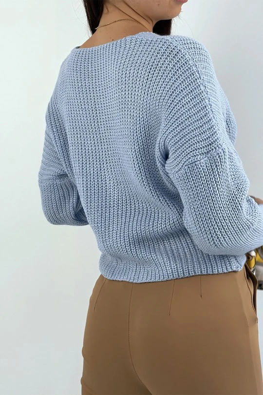 Gilet en maille acrylique turquoise très tendance. Gilet femme tendance collection automne 2020 2021
