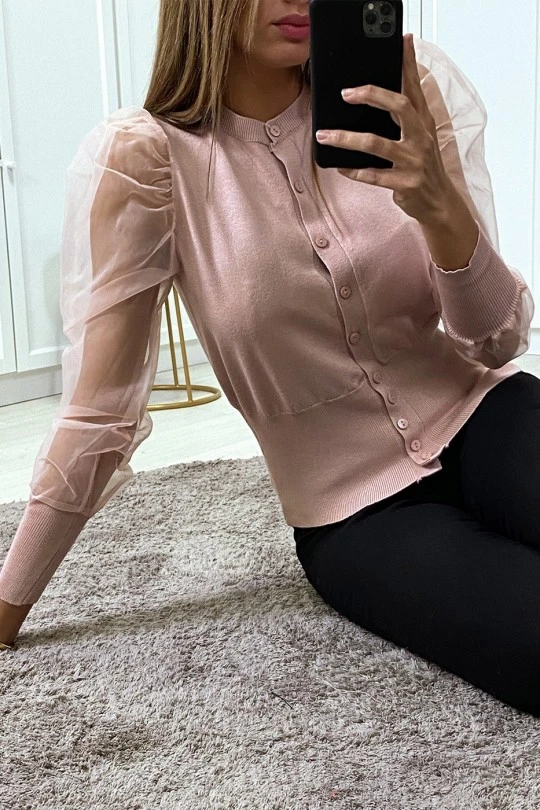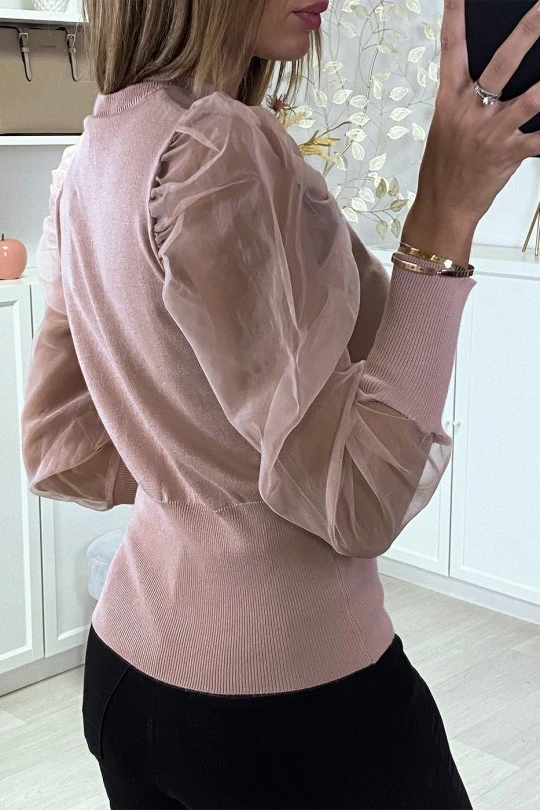 Haut Beige Effet Velours Et Maille Transparente Au Niveau Des épaules Pour Un Effet Col Bateau