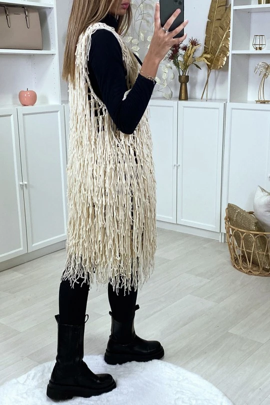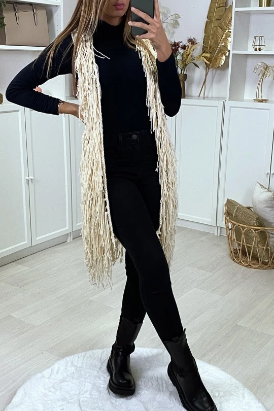Gilet Sans Manche Beige Ă  Frange Ficelle