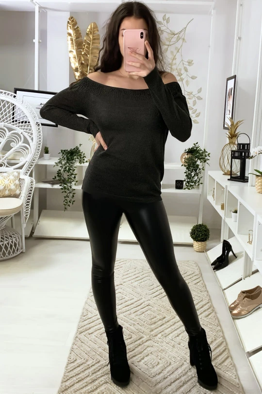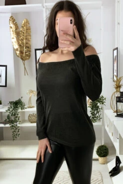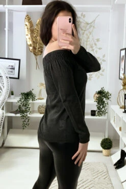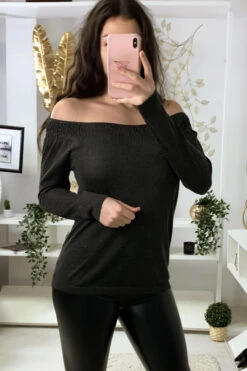 Haut Beige Effet Velours Et Maille Transparente Au Niveau Des épaules Pour Un Effet Col Bateau