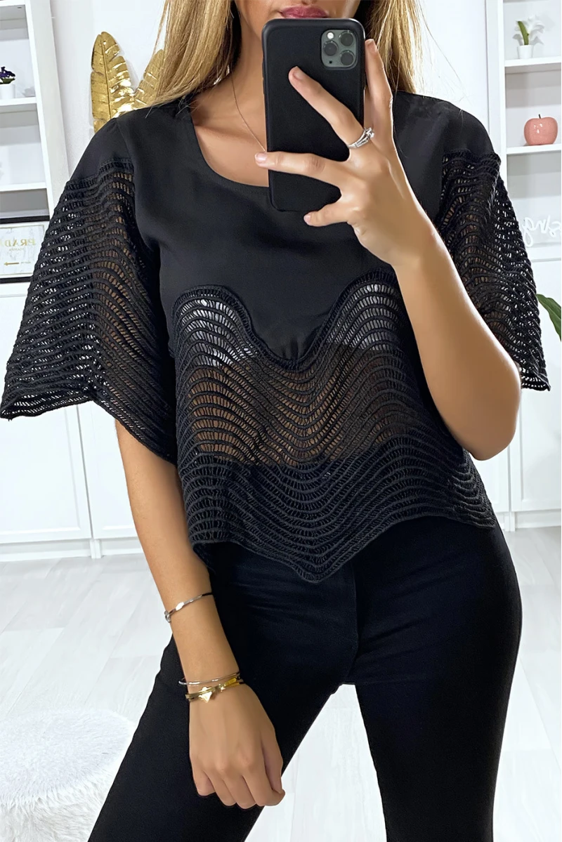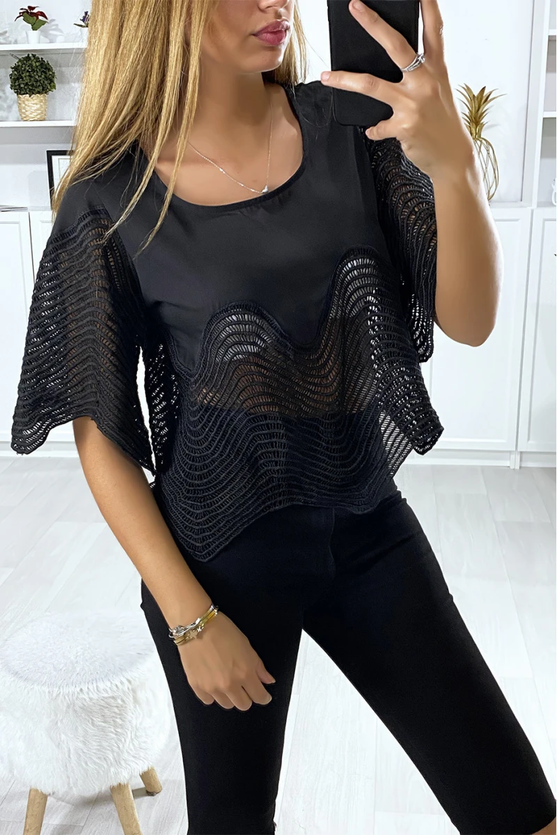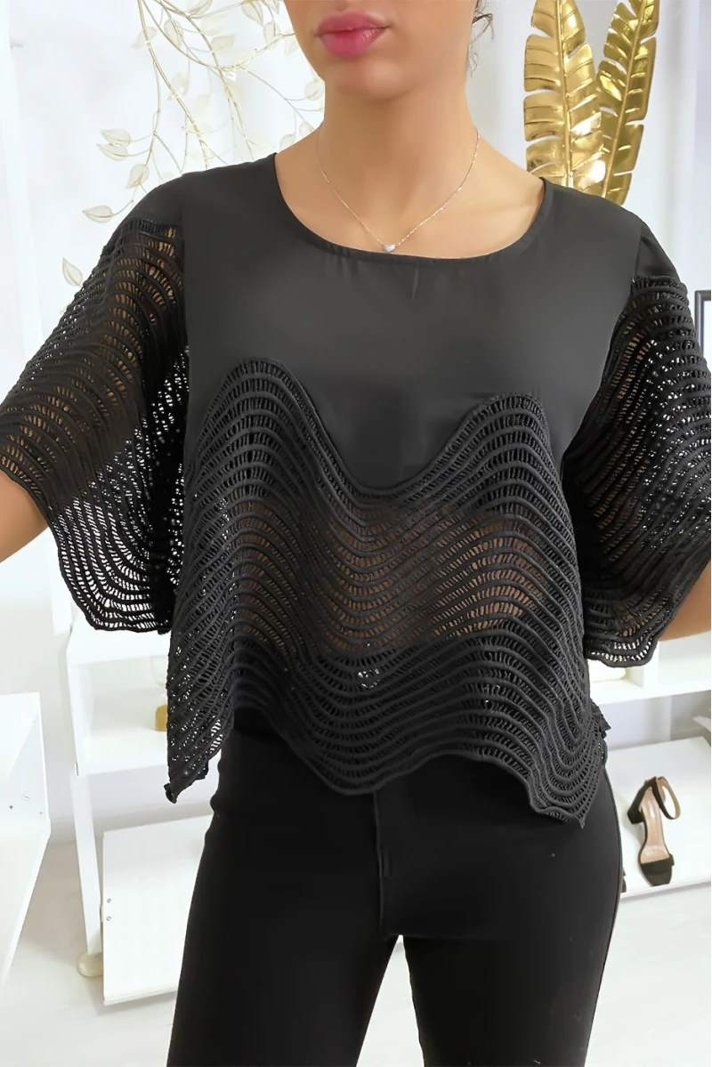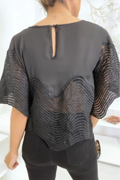 Haut noir court avec broderies Ă porter avec une jupe, un short ou un jean