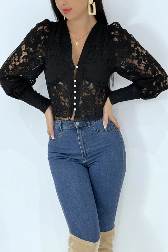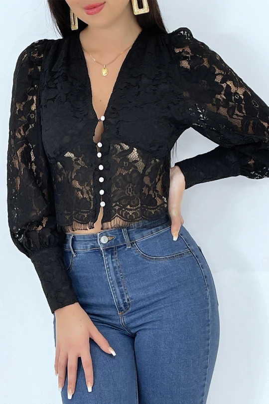 Haut noir en dentelle style chemiser vintage.Â
