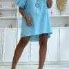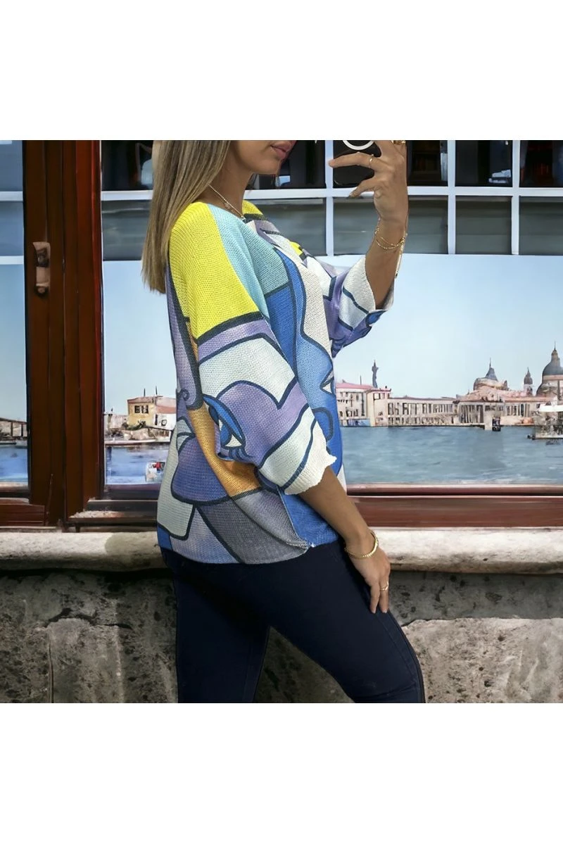 Haut over size manche chauve souris jaune avec joli motif en maille tricot