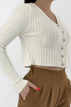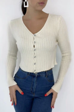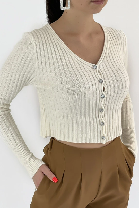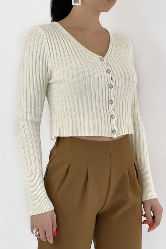 Joli Gilet Beige Côtelé Court Avec Boutons Brillants