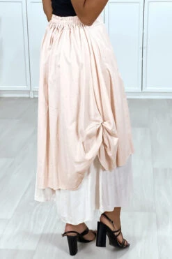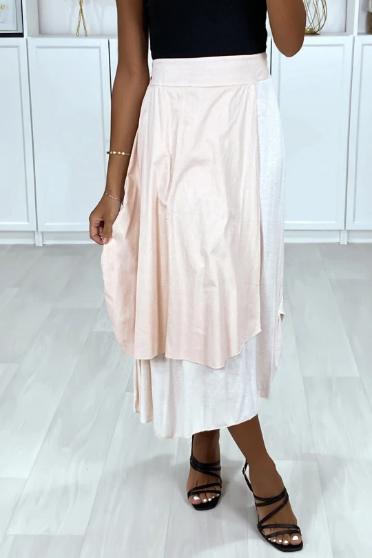 Jupe 2 en 1 en rose avec fronce sur le cotĂ©. Jupe longue tendanceÂ