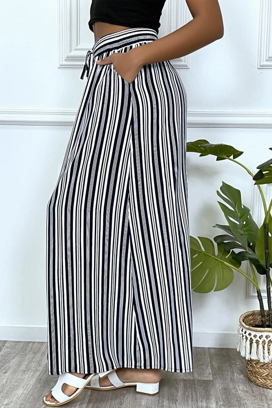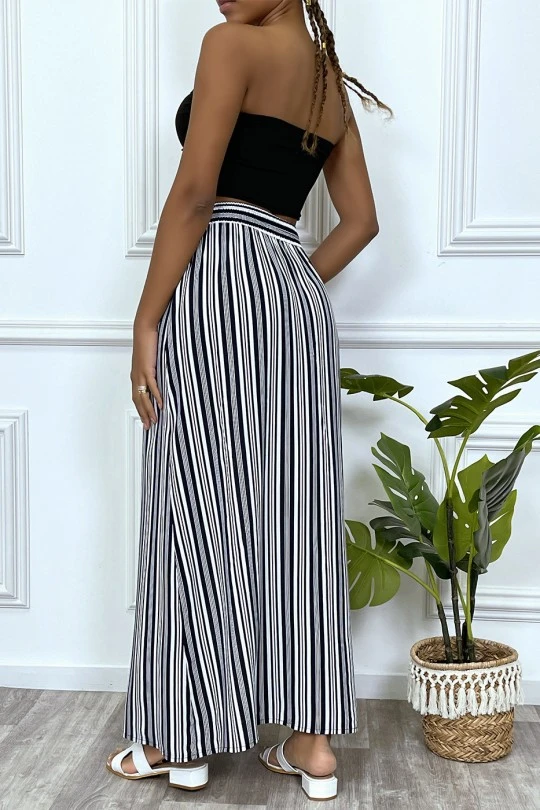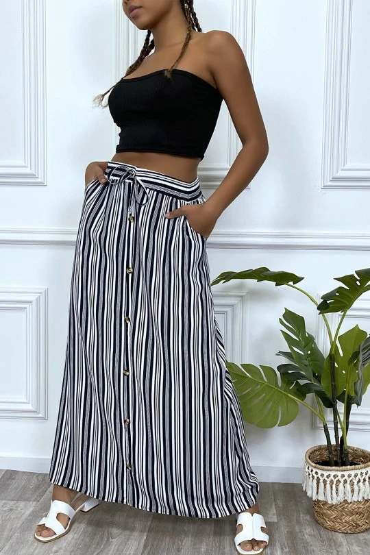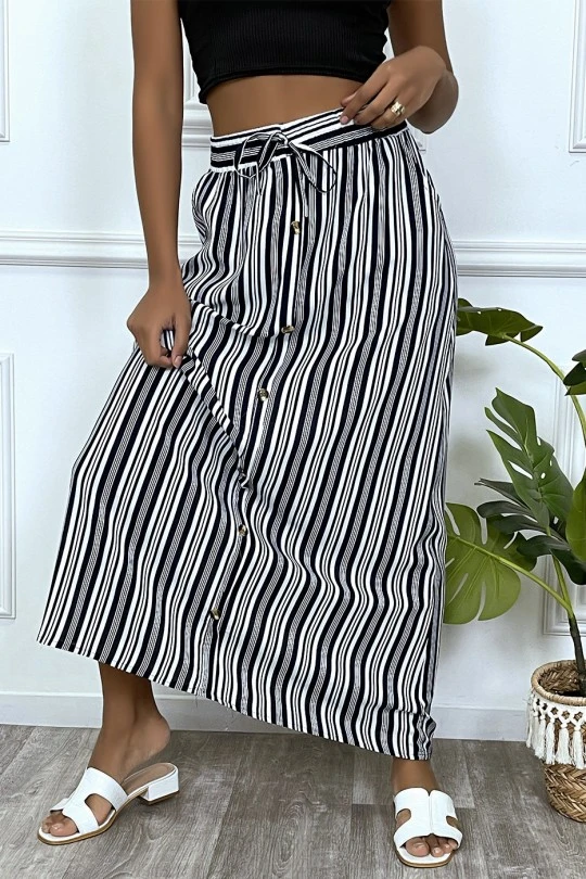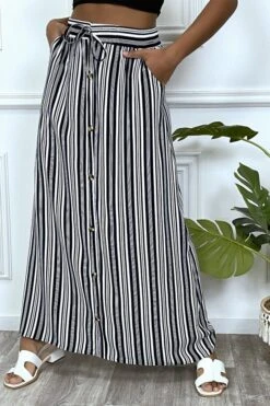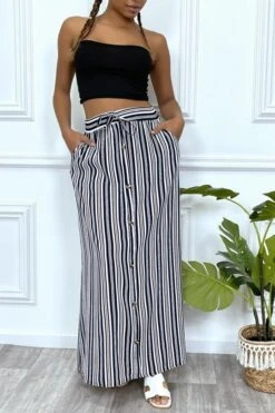 Jupe longue blanche à rayure et coupe droite avec boutons