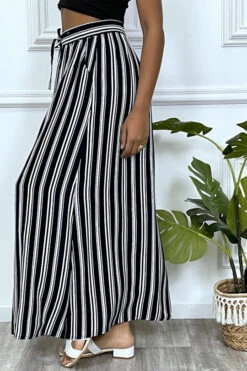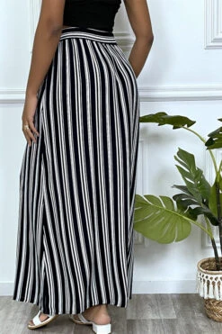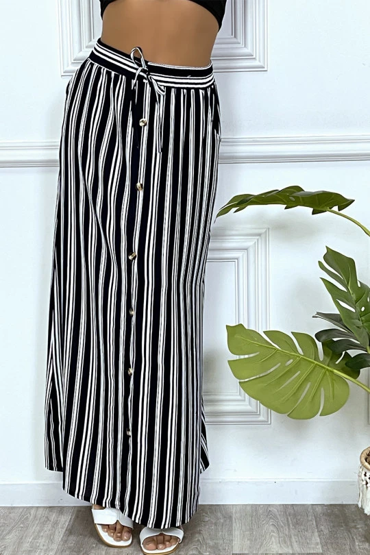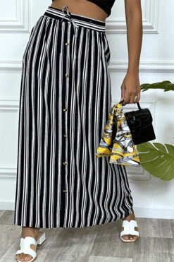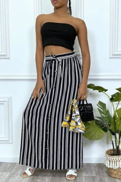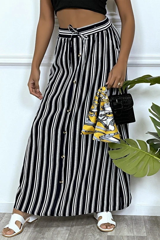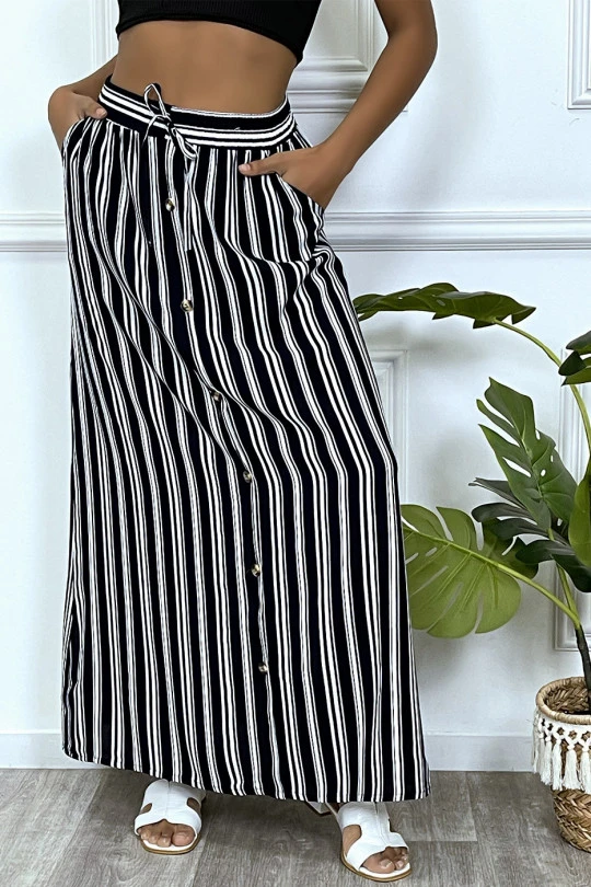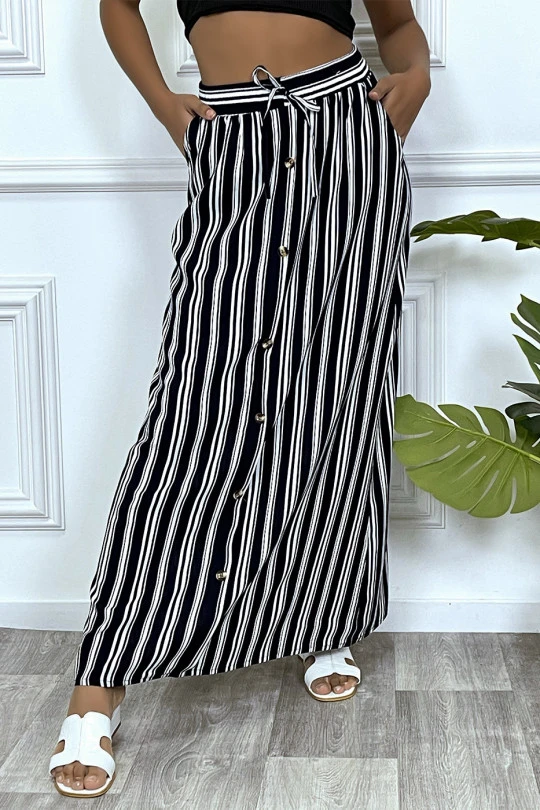 Jupe longue marine Ă rayure et coupe droite avec boutons