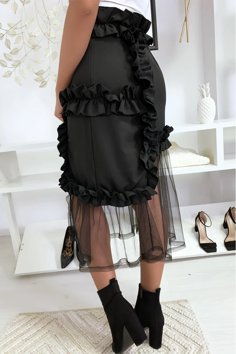 Sublime jupe noir à volant et tulle. Mode femme fashion et chic