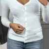 Long gilet indigo pour femme en maille tricot très doux et extensible. Gilet femme très chic et agrĂ©able Ă porter pour tous les joursÂ