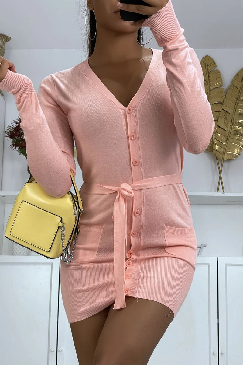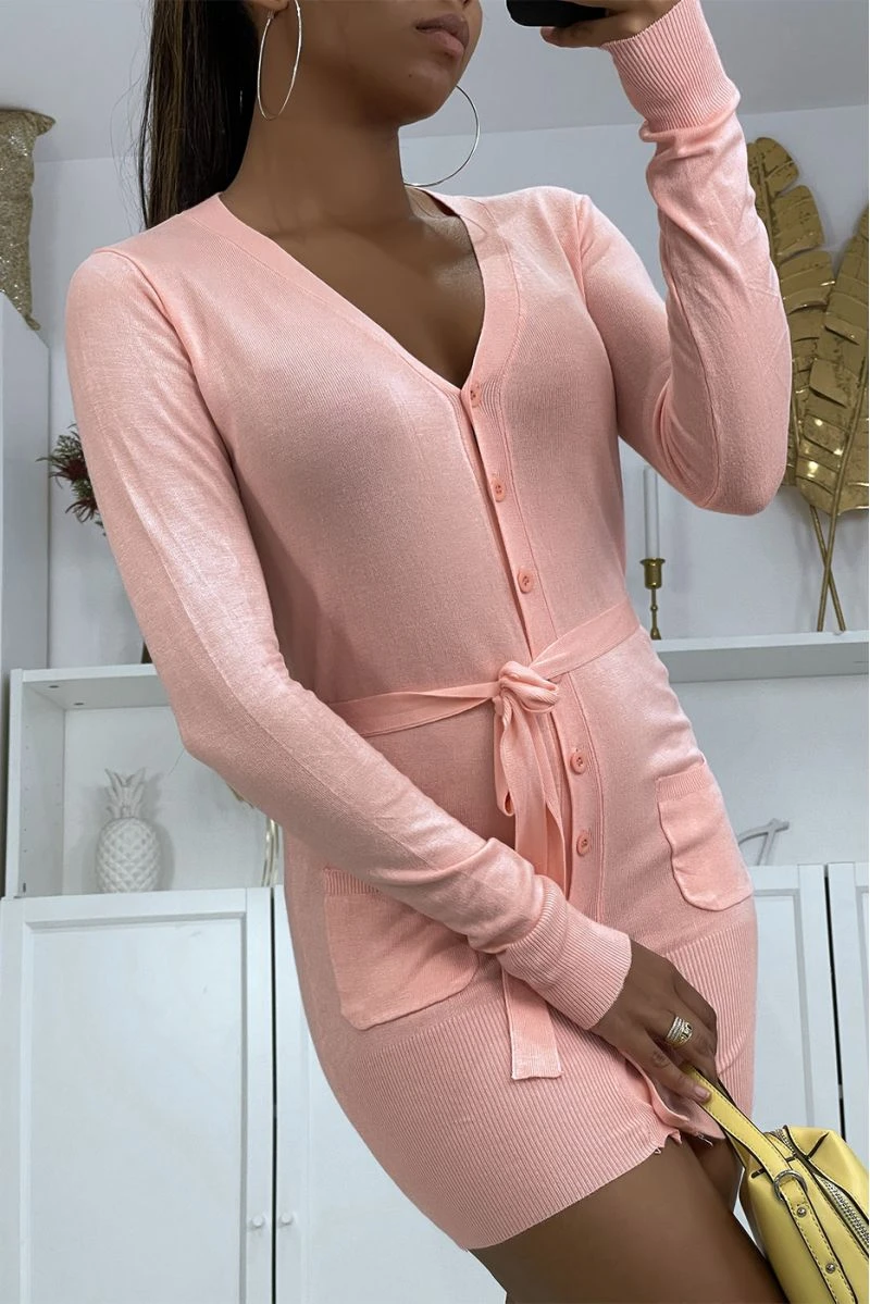 Long gilet rose pour femme en maille tricot très doux et extensible. Gilet femme très chic et agrĂ©able Ă porter pour tous les joursÂ