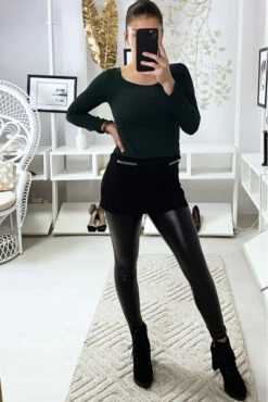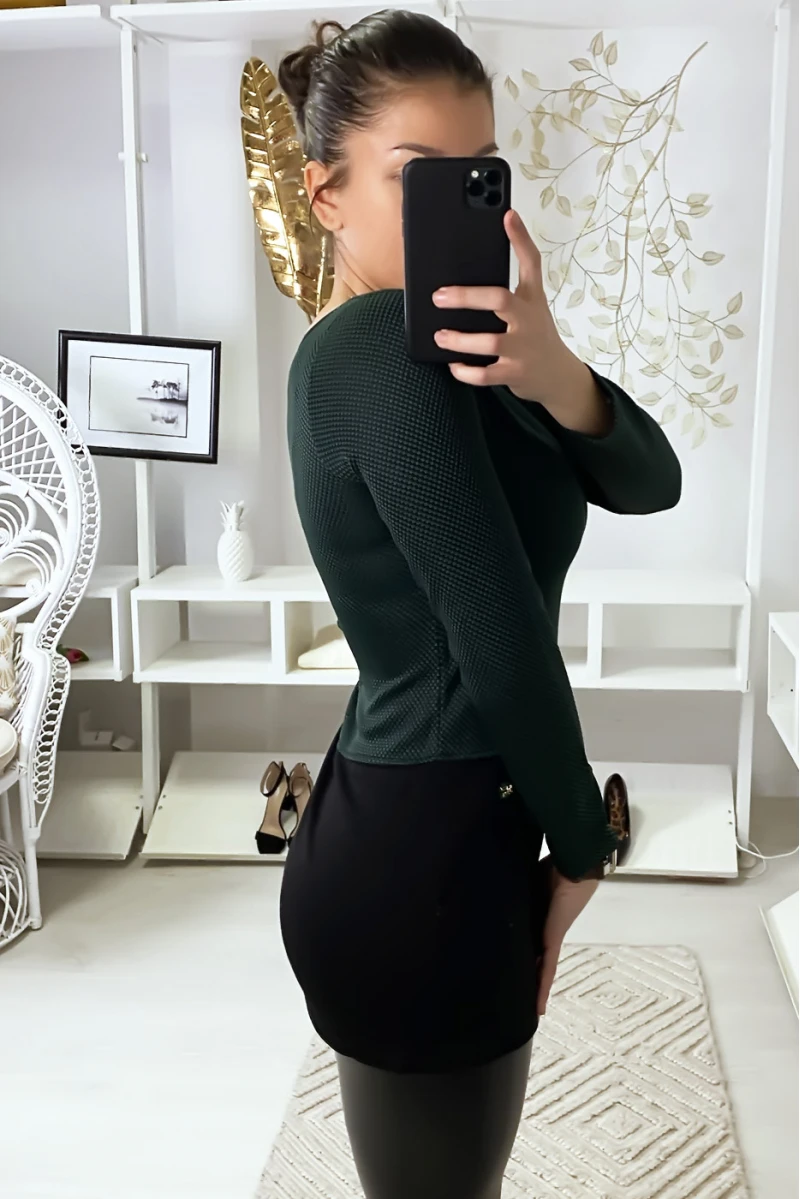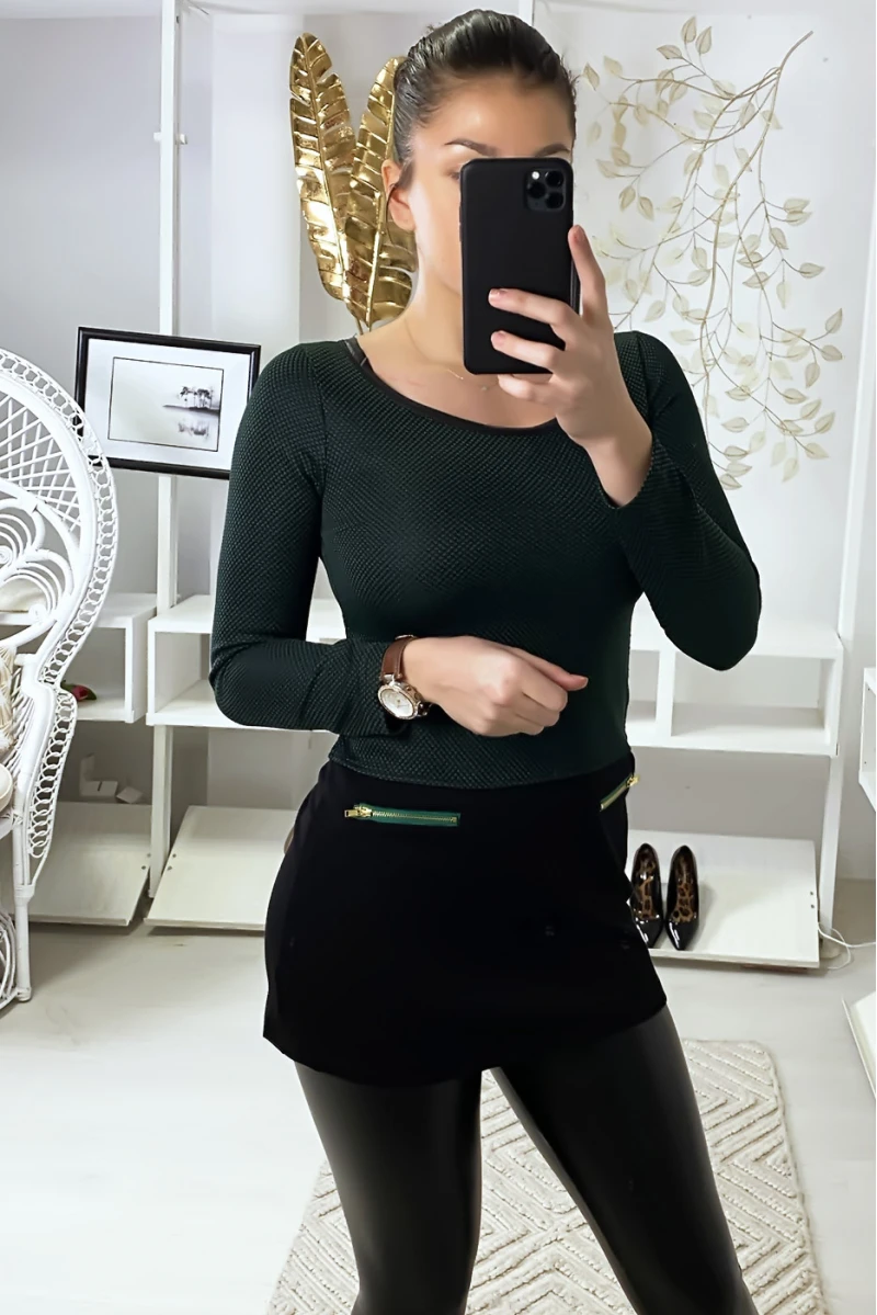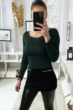 Long top vert à manches longues. Tendance femme à porter avec un pantalon simili, jean ou autre bas pour un look différent et actuel.