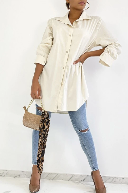 Longue chemise beige très tendance. Chemise femme fashion et pas cher en coton fabriquĂ© en FranceÂ