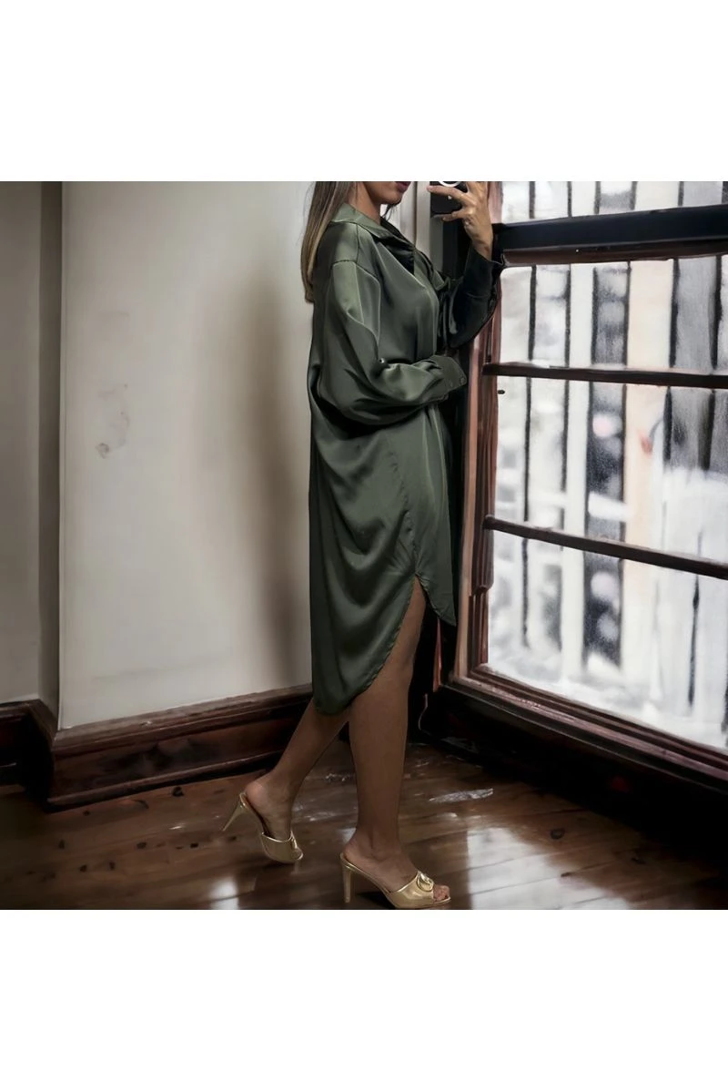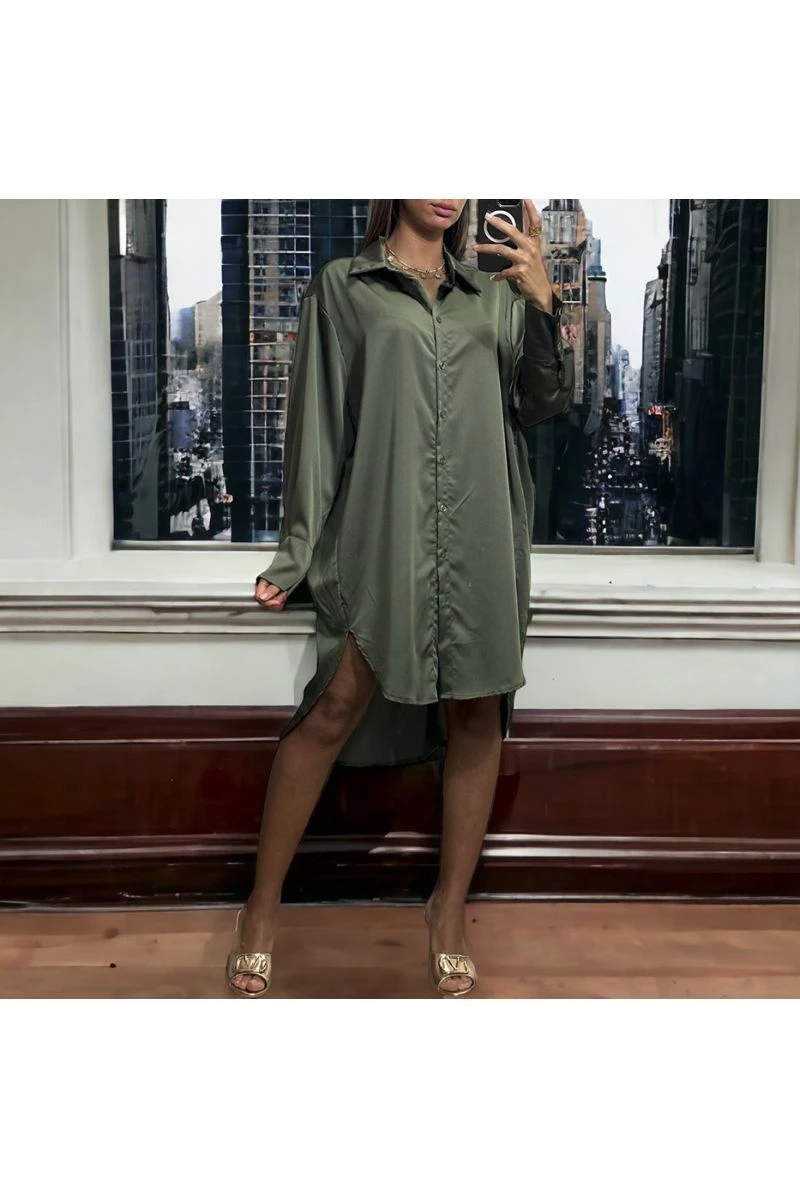 Longue chemise satinĂ© kaki over size jusqu’au 50