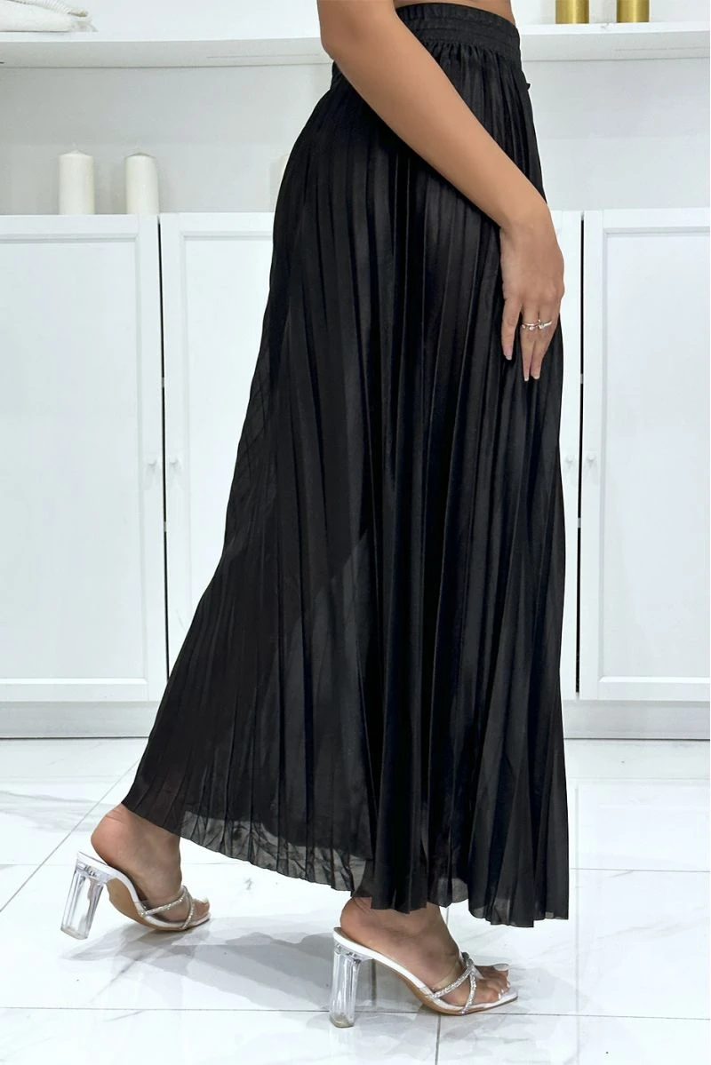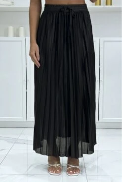 Longue Jupe Plissé Satiné Noire Très Chic