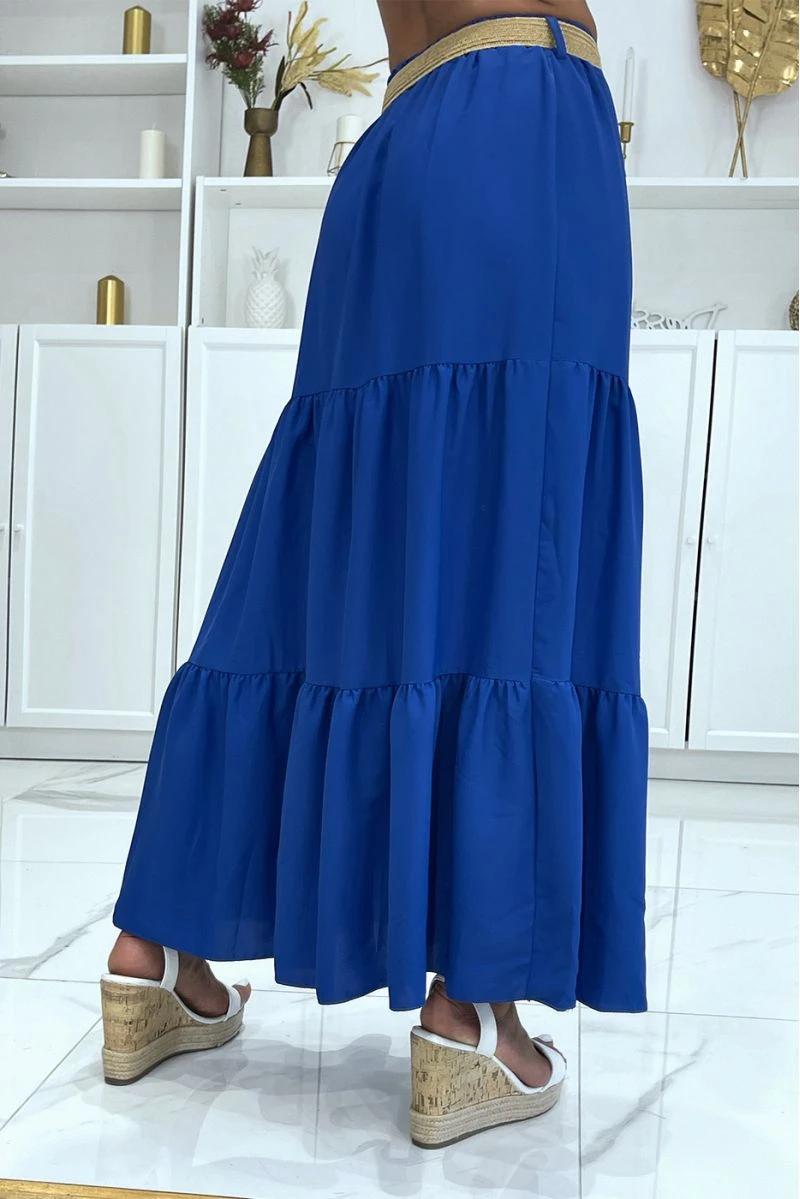 Longue Jupe Royale Style Bohème Chic Avec Magnifique Ceinture Effet Paille à Fermoir Rond