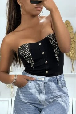 Mega destockage Magnifique haut Noir avec boutons et strass. Top femme fashion et sexy 1896