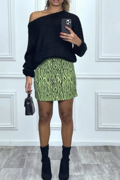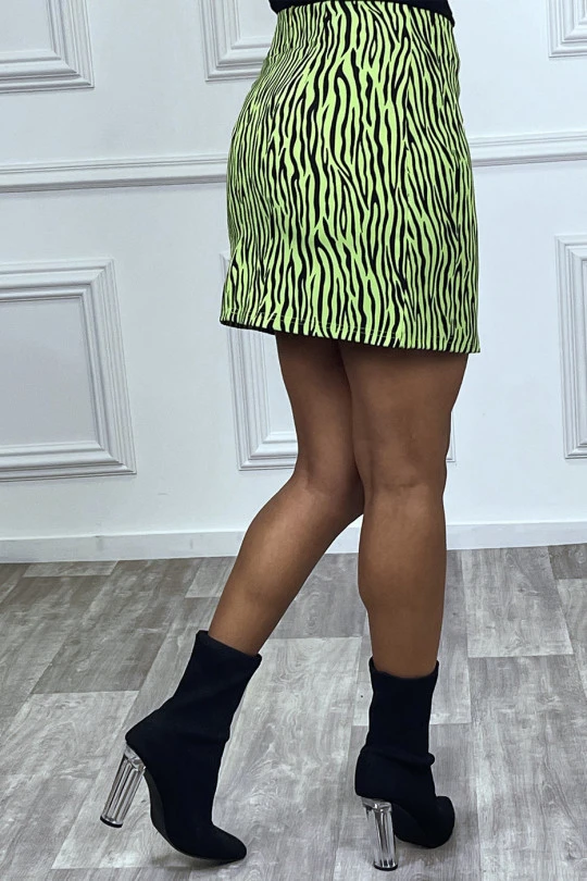 Mini jupe droite zebré verte
