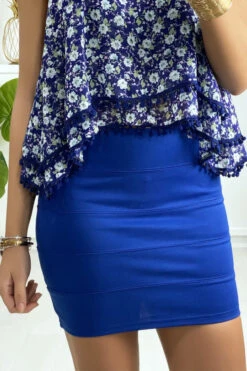 Mini jupe royal Ă bande avec fermeture au dos. Mode femme pas cherÂ