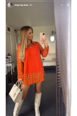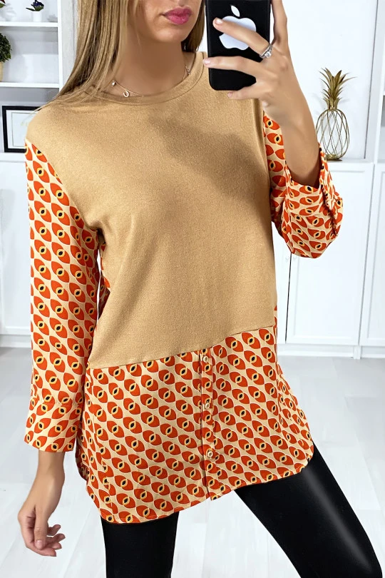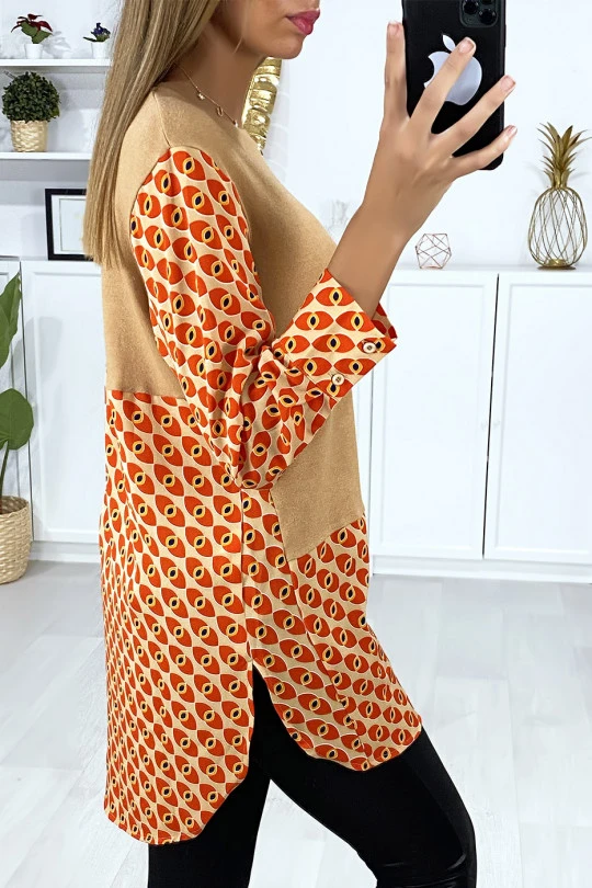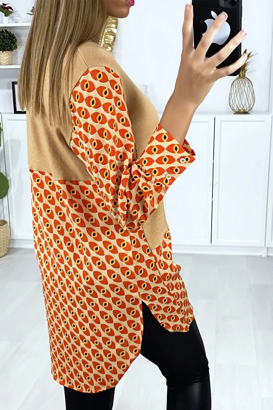 Robe tunique taupe col chemise pour femme avec joli motif. VĂŞtement femme fashion et pas cherÂ