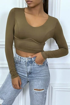 T-shirt court taupe à manches longues avec armature poitrine. Très tendance et simple Ă accessoiriser.Â