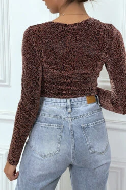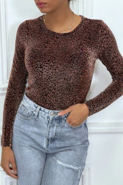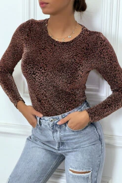 T-shirt léopard noir à manches longues. Tendance et agréable à porter, il est parfait pour une tenue habillée.