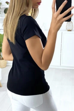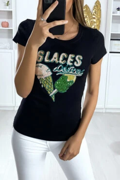 T-shirt noir à imprimé en sequins , vêtements pour femmes à petit prix